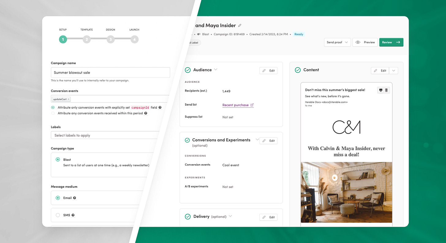 Augmenting Iterable’s state-of-the-art user interface, Iterable has further modernized the campaign creation workflow, enabling marketers to build complex cross-channel campaigns from different starting points. Campaign creation is now easier and more efficient to deliver the cohesive and personalized experiences that customers have come to expect.